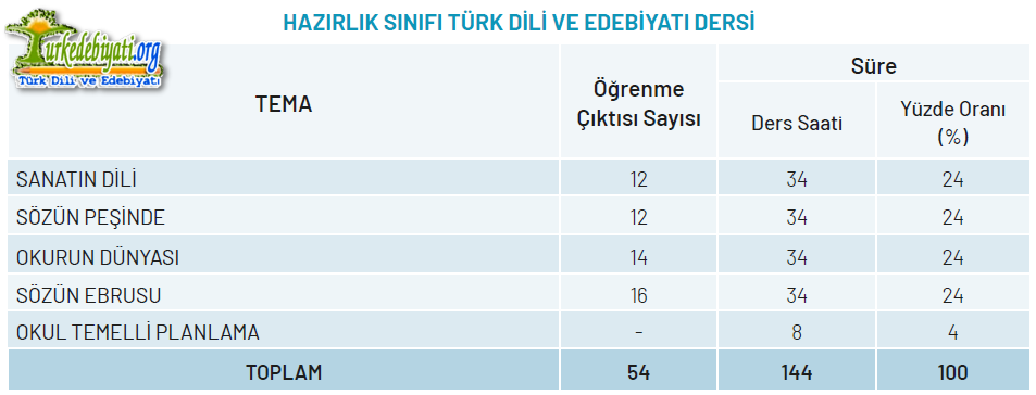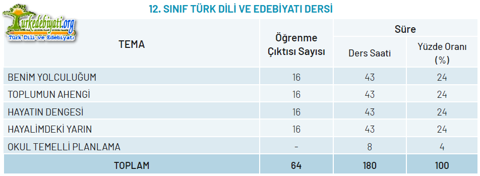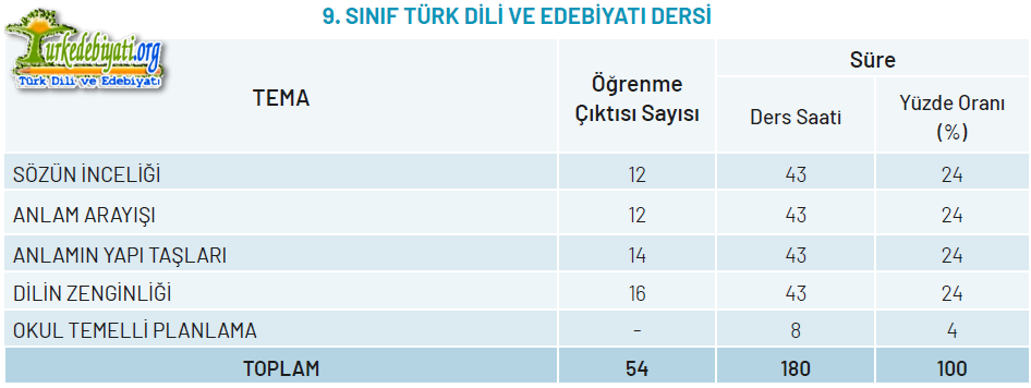 TÜRK DİLİ VE EDEBİYATI DERSİ ÖĞRETİM PROGRAMI YAPISI (YAZILI TABLO)