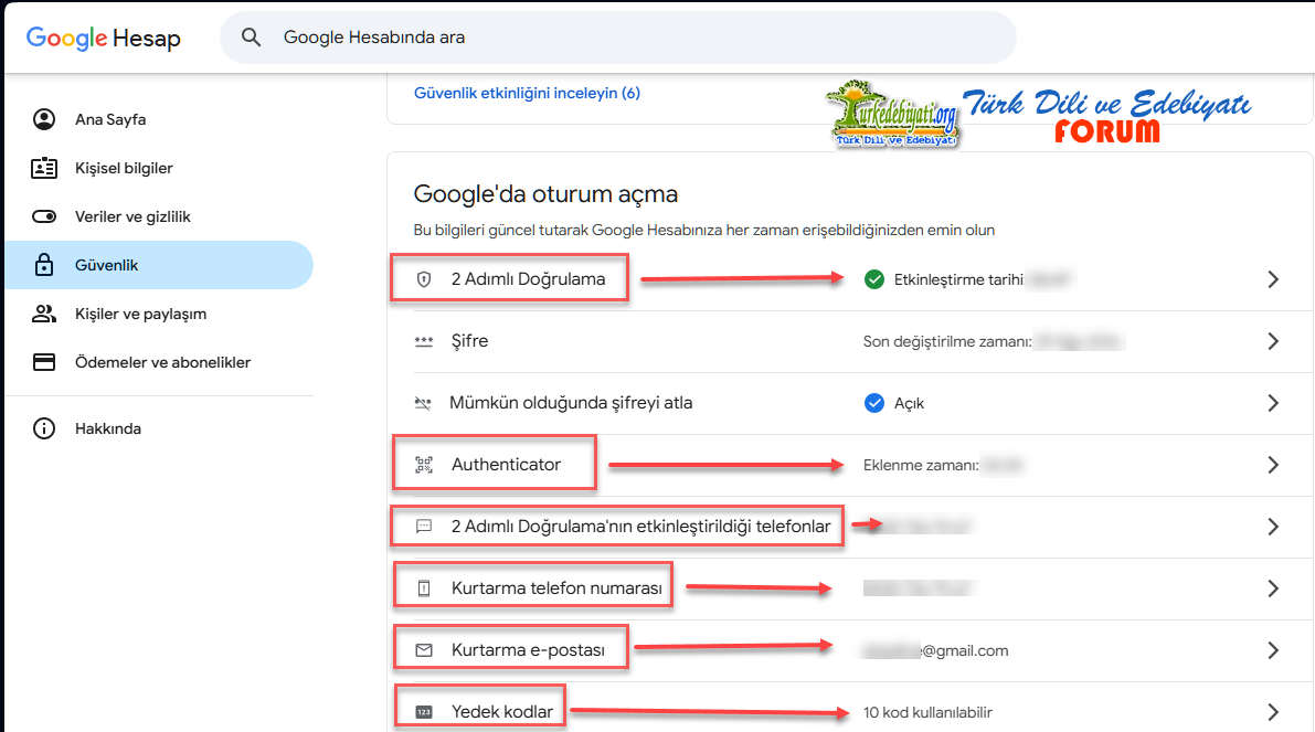 2) Google hesabında 2FA