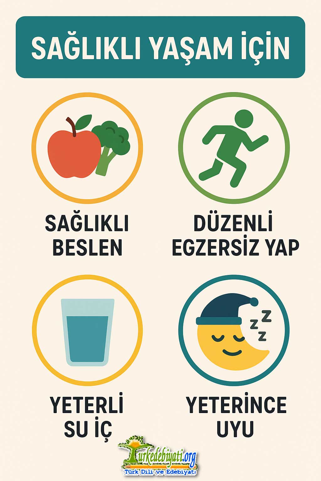 Sağlıklı beslenme piramidi veya geri dönüşüm yollarını simgelerle anlatmak.