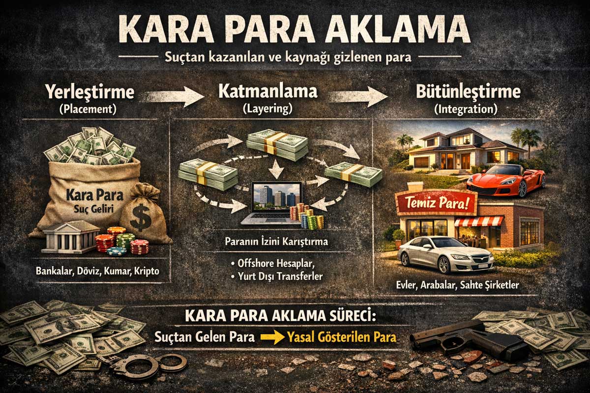 Para sisteme sokulur (bankaya yatırma, şirket üzerinden geçirme, döviz bürosu, kripto, kumar vb.) -
