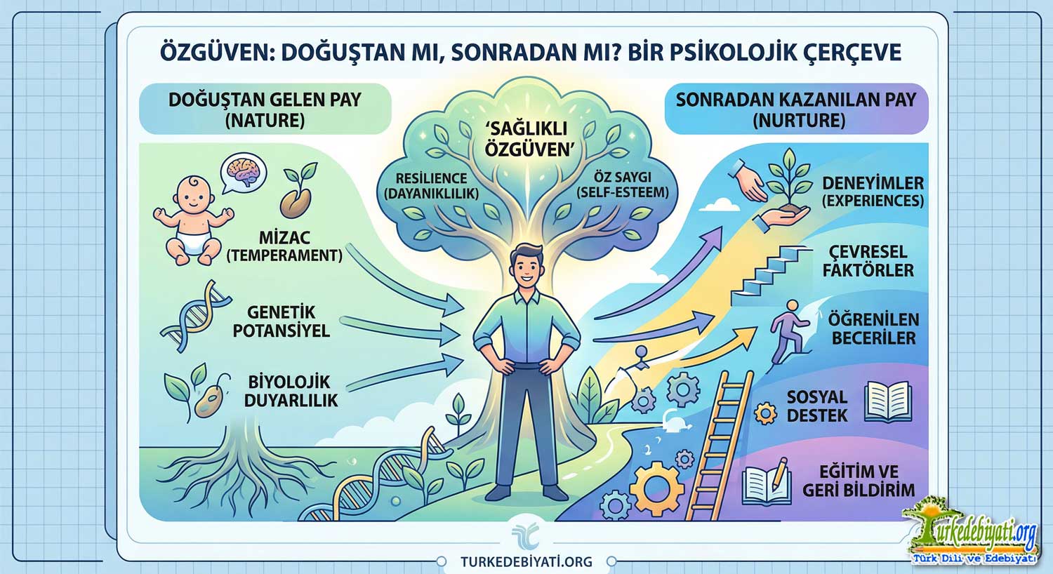Sonuç olarak: Özgüvenin temeli mizaçla atılır, ancak binanın yükselmesi tamamen öğrenilmiş davranışlar ve çevresel geri bildirimlerle gerçekleşir. Dolayısıyla özgüven, ömür boyu üzerinde çalışılabilecek ve geliştirilebilecek bir beceridir.