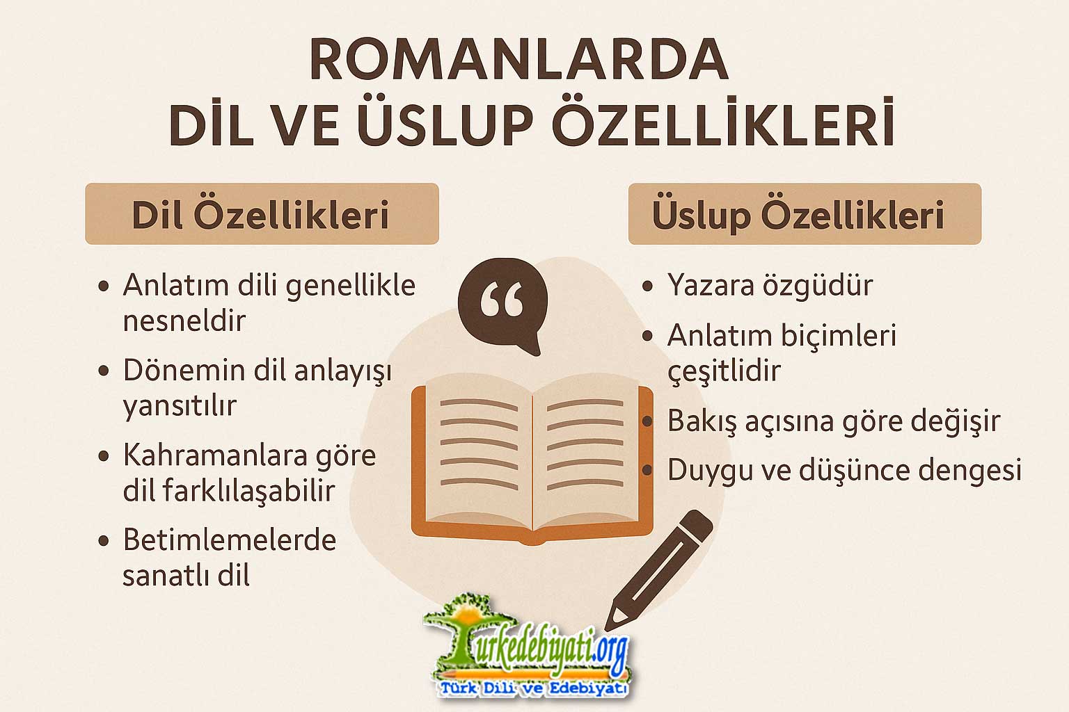 Romanlarda dil ve üslup özellikleri, yazarın anlatım tarzını, dönemin edebî anlayışını ve eserin türünü yansıtan en önemli unsurlardandır. Aşağıda romanlarda görülen dil ve üslup özelliklerini başlıklar hâlinde özetleyelim: